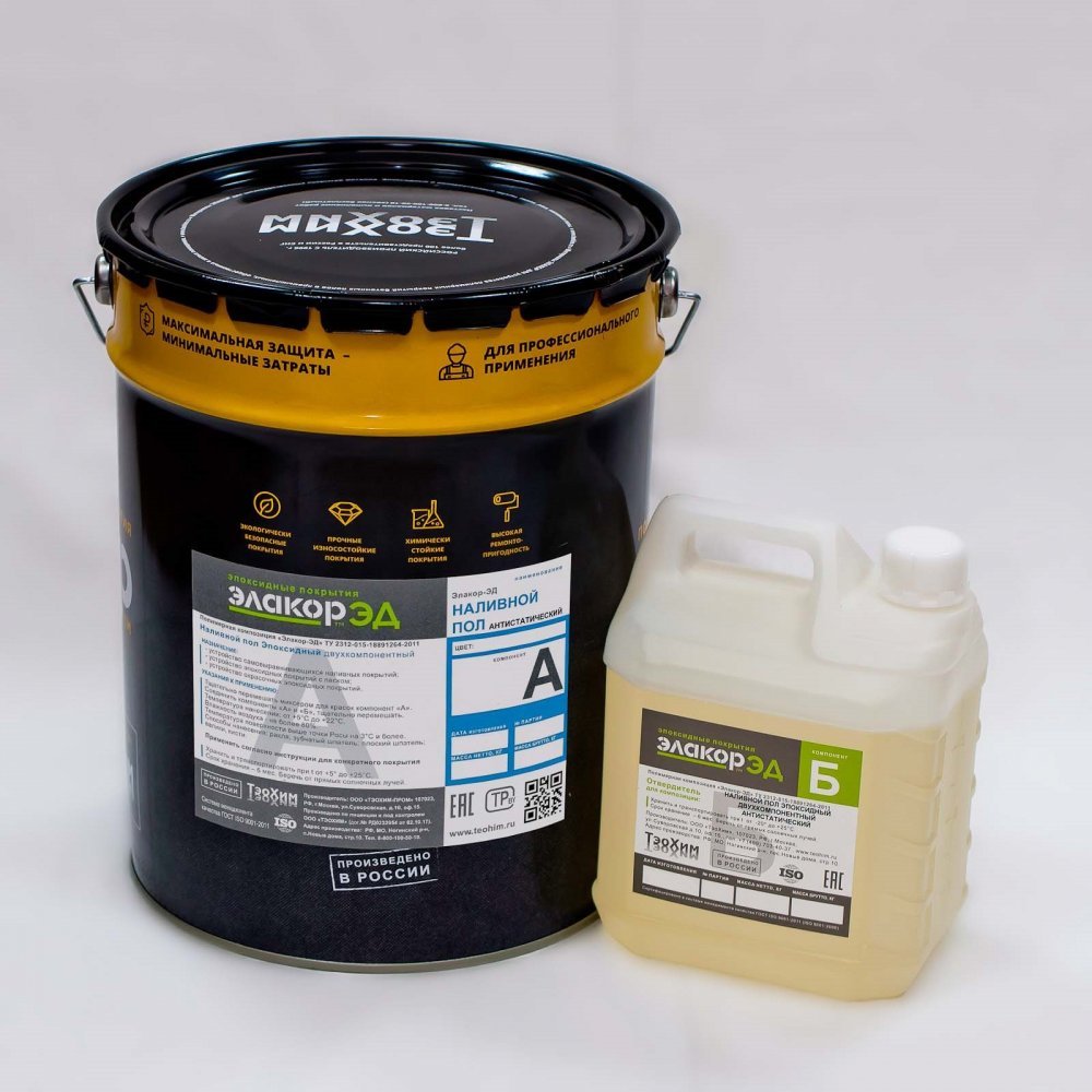 Лак для бетона, камня, кирпича Антистатический наливной пол Элакор-ЭД – электропроводящий эпоксидный двухкомпонентный цветной состав. Для устройства антистатических (токоотводящих и электрорассеивающих) наливных покрытий полов. Минимальный объем покупки -